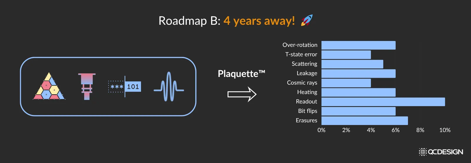 Armed with this information, the hardware manufacturer can go back and design new architectures, using Plaquette as a guide. They iterate quickly, and find architectures that have better tolerances across the board for the imperfections that arise in their systems. These architectures can then be built much sooner (in this example, only 4 years!).