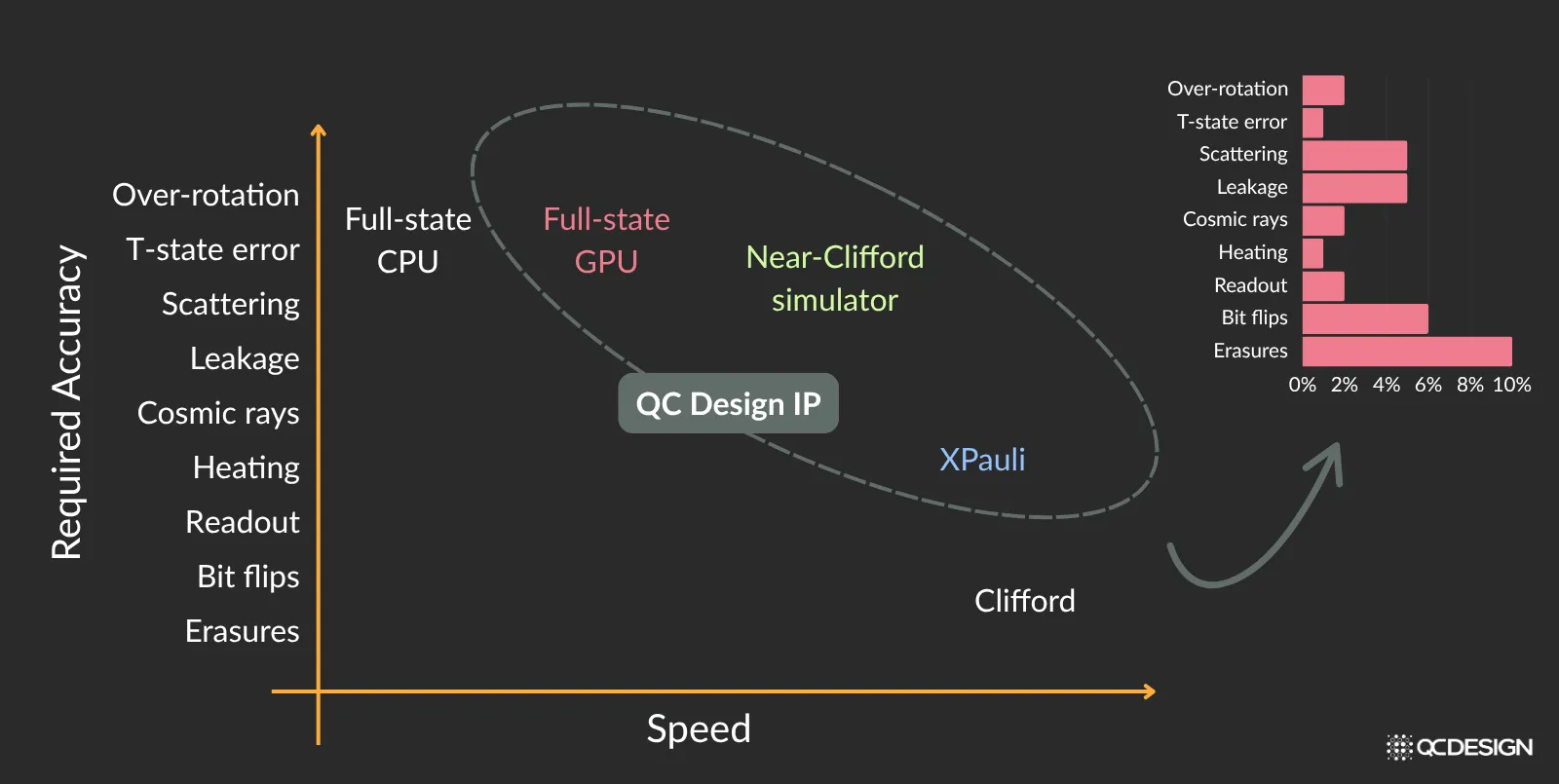 Our extended Pauli (XPauli) simulator can capture important imperfections like leakage and cosmic ray events in superconducting qubits, scattering in neutral atoms, heating in trapped ions, and much more. Our Near-Clifford simulator can deal with any imperfection, which is close to the so-called Clifford Group, and it includes two important classes of imperfections arising from over- and under-rotation, for example, if the pulse acting on a qubit is too long or too short. And also T-states that are very important for universal quantum computing.